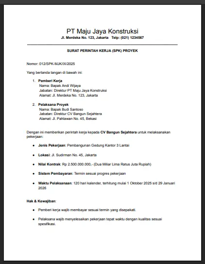 Berikut format umum SPK proyek yang biasa digunakan di Indonesia: